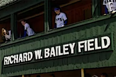 The field, formerly known as the "Softball field at Ward Park," now features a brand new inning-by-inning scoreboard with a header featuring the Monks and NCAA logos and the text "Richard W. Bailey Field at Saint Joseph's College." The new field designation can also be found in bold, capital letters above the Monks' home dugout on the third base side of the diamond.