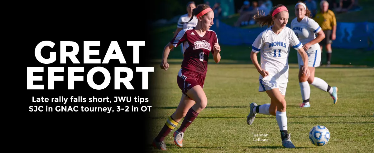 Box Score PROVIDENCE, R.I. – Second-seeded Johnson & Wales University (12-7-1) nipped #7 Saint Joseph's College (9-10-0), 3-2 in overtime, in a Great Northeast Athletic Conference (GNAC) Women's Soccer Tournament Quarterfinal on Saturday afternoon.