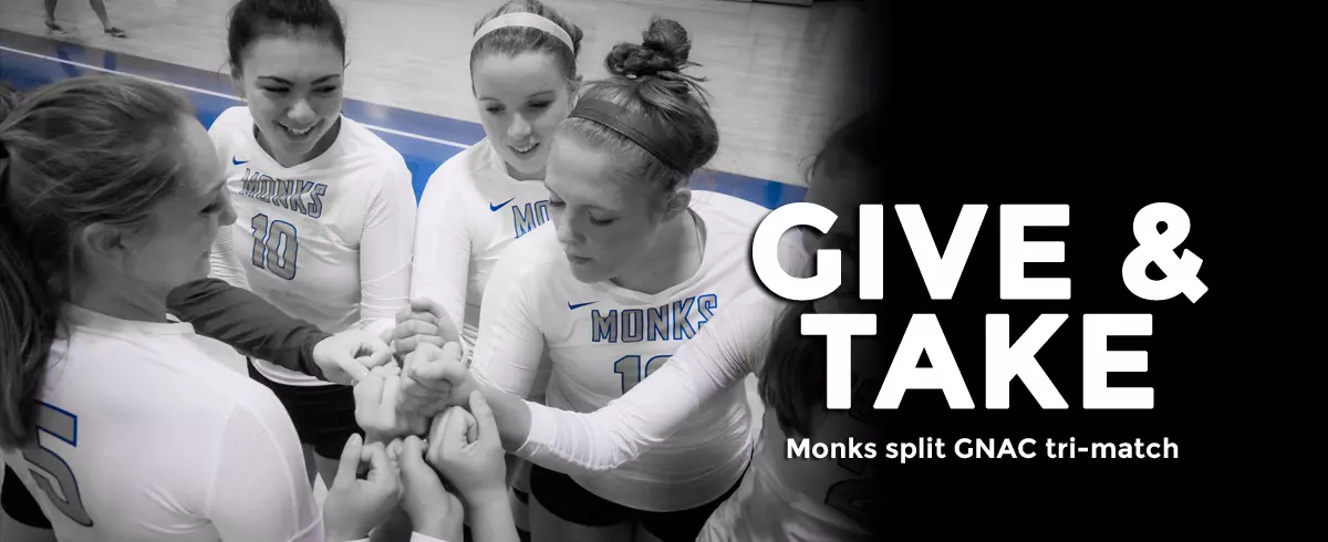 Box Score 2 STANDISH, Maine – Saint Joseph's College (9-10, 4-3 GNAC) split a Great Northeast Athletic Conference (GNAC) volleyball tri-match at the Harold Alfond Center on Saturday. The Monks opened the day with a 3-2 (25-15, 25-16, 21-25, 22-25, 15-5) victory over Mount Ida College (7-16, 1-5 GNAC) and capped the action with a 3-0 (17-25, 12-25, 16-25) loss at the hands of Johnson & Wales University (24-0, 8-0 GNAC).