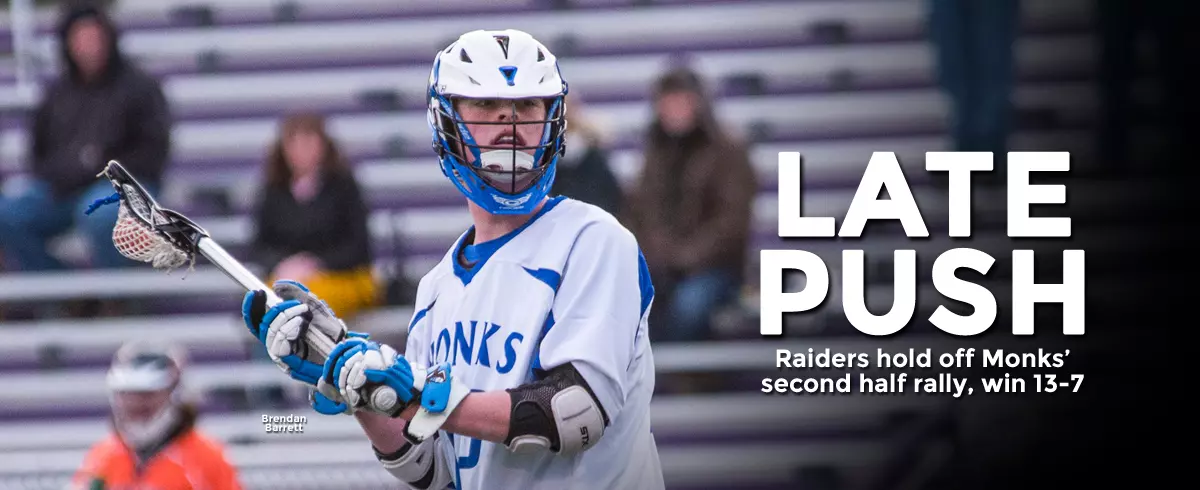 The Monks faced a 7-2 deficit heading into intermission and battled back into contention by scoring three goals in the first seven minutes of the third stanza. Following the SJC scoring burst, the Raiders staved off the hosts' comeback effort by netting a pair of markers in a matter of six seconds, an impressive feat that kicked off an 8-2 run spanning the remainder of play.