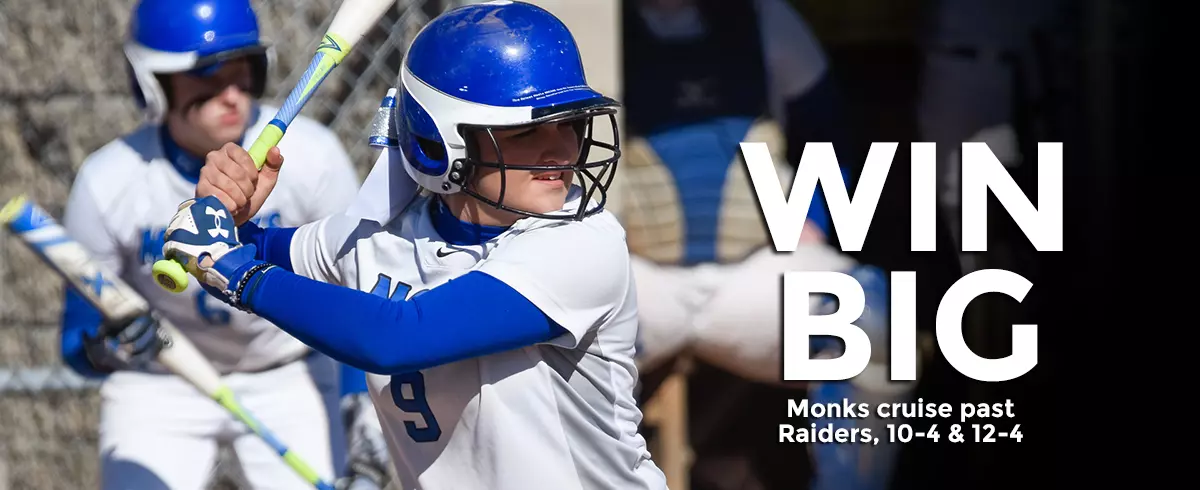 Box Score 2 STANDISH, Maine – Saint Joseph's College (5-9, 2-2 GNAC) swept a Great Northeast Athletic Conference (GNAC) doubleheader versus Rivier University (6-8, 0-2 GNAC) at Richard W. Bailey Field on Saturday afternoon. The Monks opened with a 10-4 triumph and completed the sweep with a mercy-rule 12-4 victory.