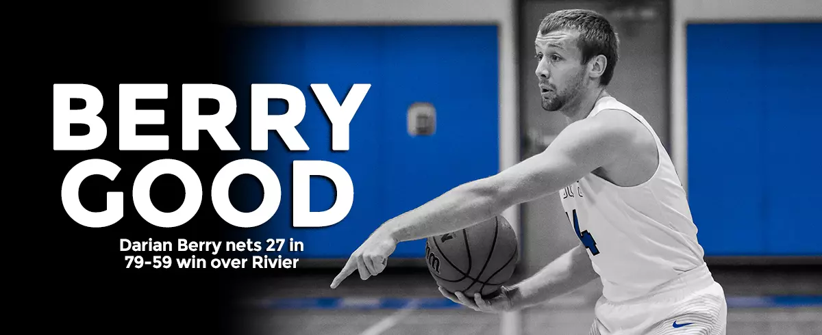 Box Score NASHUA, N.H. – Junior guard Darian Berry (Rochester, N.H.) scored 27 points in just 20 minutes to propel Saint Joseph's College (8-6, 3-2 GNAC) past Rivier University (1-13, 0-5 GNAC), 79-59, in a Great Northeast Athletic Conference (GNAC) men's basketball contest on Saturday afternoon.