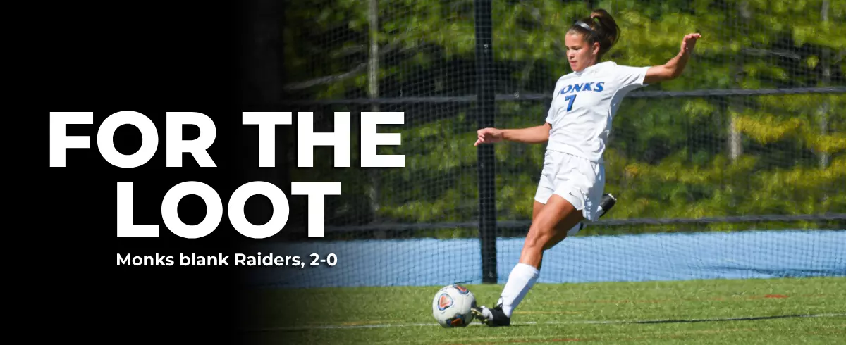 The Monks applied all the offensive pressure in the early going and notched six shots in the first 13 minutes. The efforts paid off on their seventh shot, as a long free kick from senior keeper Adia Grogan (Kennebunk, Maine) landed in the box and on the foot of freshman Alicen Burnham (Monmouth, Maine), who directed an odd-angle shot past Rivier keeper Maya Puma.
