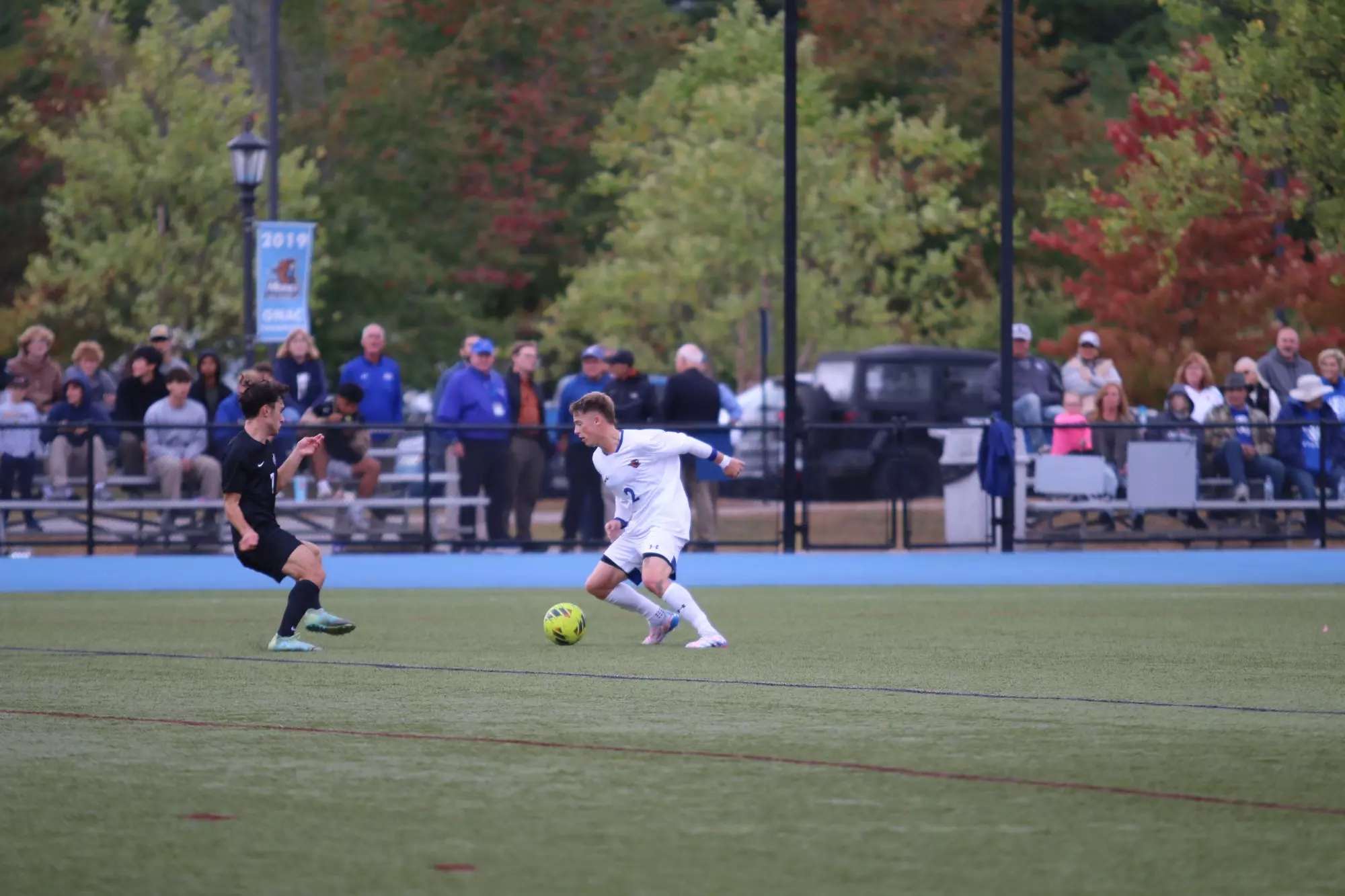 SJC senior Liam Foley (Middleton, Mass.) made three saves in the shutout effort while Regis keeper Chris Alcon turned away three shots in the setback.